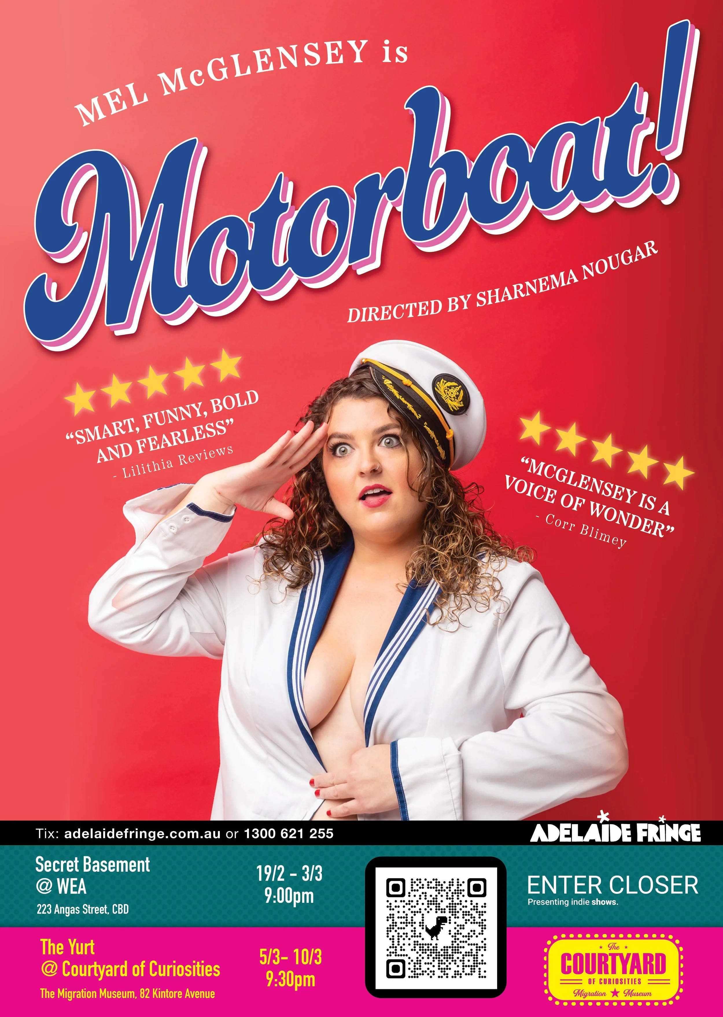 Tickets are now on sale for Mel McGlensey is MOTORBOAT at Adelaide Fringe! This is the world premiere of Melissa’s debut clown show, you don’t want to miss it! Details and tickets here.